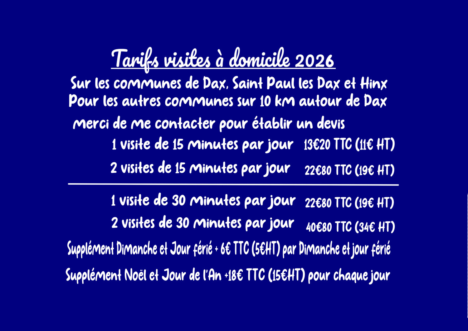 Ces tarifs sont pour les communes de Dax, Saint Paul les Dax et Hinx.